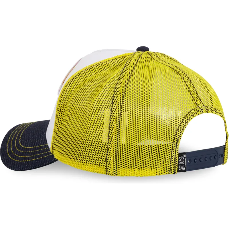 Το στυλ trucker φημίζεται για την ξεχωριστή κατασκευή του, η οποία περιλαμβάνει ένα συμπαγές μπροστινό μέρος και ένα πλέγμα στο πίσω μέρος που παρέχει εξαιρετικό αερισμό, ιδανικό για όσους αναζητούν άνεση κατά τη διάρκεια παρατεταμένης χρήσης. Επιπλέον, αυτό το καπέλο διαθέτει ρυθμιζόμενο κλείσιμο με snapback, διευκολύνοντας την εφαρμογή σε διαφορετικά μεγέθη κεφαλιού χωρίς να χάσει το σχήμα ή την εφαρμογή του. Αυτό το χαρακτηριστικό εκτιμάται ιδιαίτερα από χρήστες που προτιμούν ένα καπέλο που ταιριάζει στο μέγεθός τους και παρέχει άνεση ανά πάσα στιγμή. Ο συνδυασμός λευκού, κίτρινου και μαύρου στο καπάκι προσφέρει μια ελκυστική αντίθεση που συμπληρώνεται από το έμπλαστρο, καθιστώντας αυτό το κομμάτι ένα εντυπωσιακό αξεσουάρ με τη δική του προσωπικότητα.
