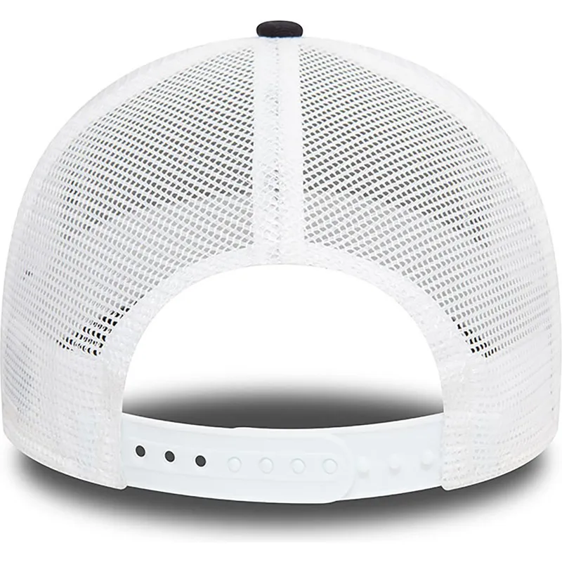 Granatowo-biała czapka typu trucker New York Yankees MLB A Frame Seasonal Infill marki New Era jest unisex, co czyni ją wszechstronną opcją zarówno dla mężczyzn, jak i kobiet. Wykonana z wysokiej jakości materiałów czapka jest trwała i odporna, doskonale wytrzymuje codzienne użytkowanie i zachowuje nienaruszony kształt i kolor przez długi czas. Logo New York Yankees wyszyte z przodu dodaje autentyczności i sportowej dumy temu wyjątkowemu egzemplarzowi.
